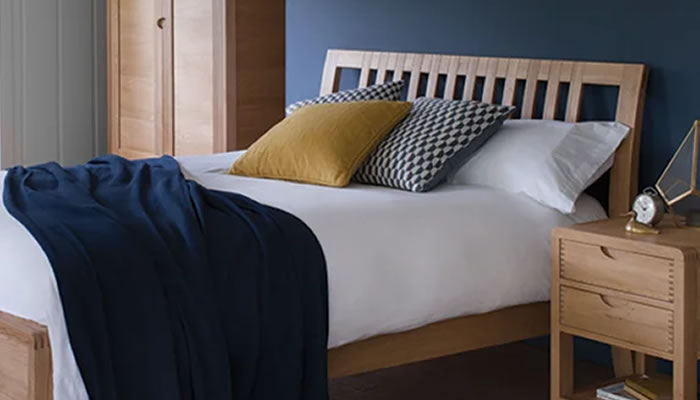This ercol Bosco double bed will form the centre piece of your bedroom, with its beautiful and distinctive headboard and feature jointing. The foot of the bed has the curved finger joint detail. Presprung wooden slats will help give you a good nights sleep. Made from pale solid oak and oak veneers with a clear matt lacquer.