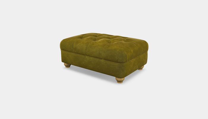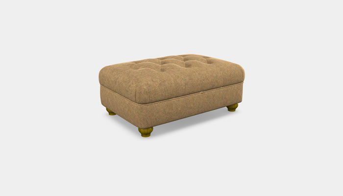 This Wood Bros Fabric Storage Footstool with Diamond Buttoning is a small and delightful accent storage footstool that is both comfortable and functional. You can use it to store special items and rest weary feet while enjoying this attractive little gem with its distinctive bun feet. The footstool's upholstered top is offset by distinctive buttoned diamond stitching. Available in a large selection of fabrics, optional custom leather piping & buttons with feet in a choice of Tudor Brown, Light Oak, Vintage and Natural Wax.