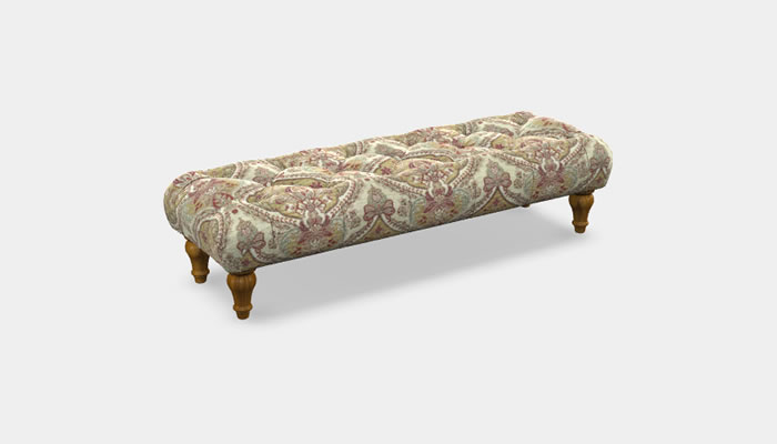 Wood Bros Fabric Footstool Oblong The Wood Bros Oblong Footstool is a soft and inviting wide, narrow and low footstool featuring turned wooden legs and a stylish diamond buttoned top. Available in an extensive range of beautiful fabrics, optional soft leather custom piping trim and legs in a selection of wood finishes.