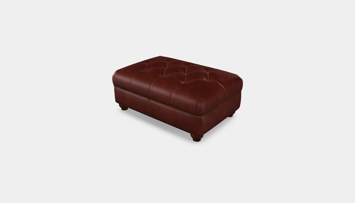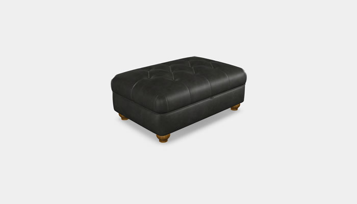 The Wood Bros Leather Storage Footstool with Diamond Buttoning is a small and delightful accent storage footstool that is both comfortable and functional. Available in a range of quality leathers, optional soft leather custom piping and button trim and legs in a selection of wood finishes.