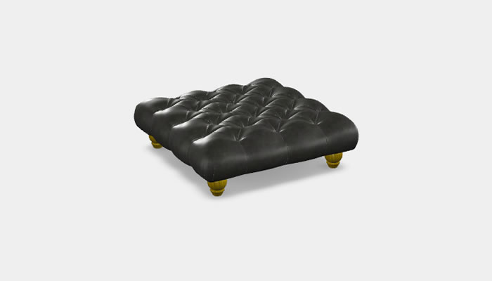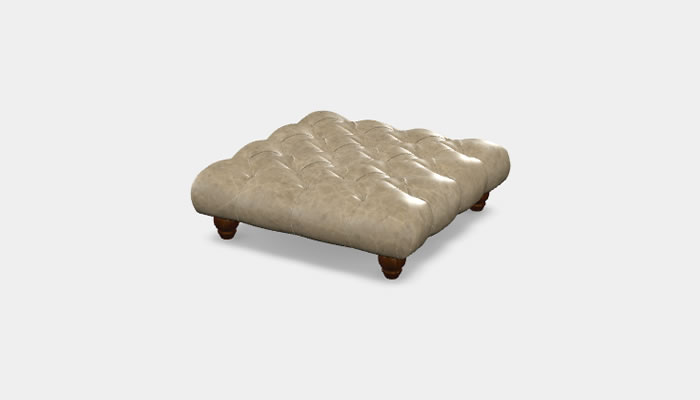 Wood Bros Leather Footstool Square The Wood Bros Leather Square Footstool is a soft and inviting square low footstool featuring turned wooden legs and a stylish diamond buttoned top. Available in a range of quality leathers, optional soft leather custom piping and button trim and legs in a selection of wood finishes.