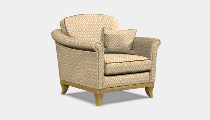 This Wood Bros Weybourne armchair has beautifully tailored design featuring scroll arms and is rounded off with a simple wooden plinth. Available in an extensive range of beautiful fabrics, optional soft leather custom piping trim and legs are available in a selection of wood finishes. The Weybourne full range from Wood Bros includes an armchair, a two seater compact sofa, a three seater medium sofa, a four seater large sofa and matching footstool all in a fabric and leather.