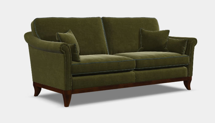 Wood Bros Weybourne Large 4 Seater Sofa The Wood Bros Weybourne four seater large sofa features a tailored design, scroll arms and a wooden plinth. Available in an extensive range of beautiful fabrics, optional soft leather custom piping trim and legs in a selection of wood finishes.