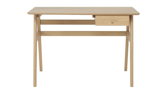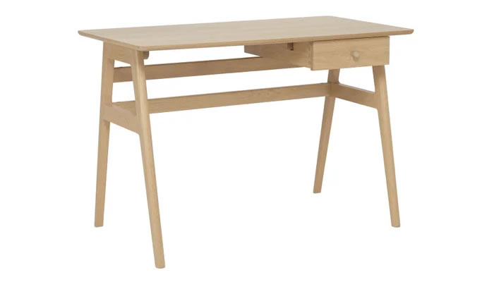 The Ballatta desk is made from solid oak and oak veneers and finished in a contemporary clear matt lacquer. It is ideal to use with a laptop or as a writing desk and will add a touch of style to a living or work space. The desk sits on tapered legs which are elegant yet understated, it can sit in a home office, a study and is compact enough for a hallway or a lounge. There is a handy small built in drawer to help keep the desk tidy.