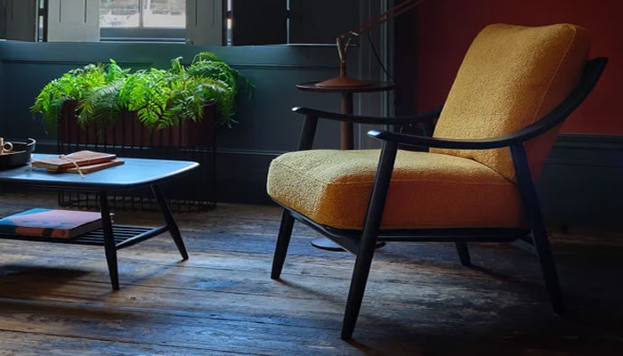 Ercol Marino Chair The ercol Marino chair features turned solid oak spindles and deep cushioning available with Quallofil® Blue interiors. Choose from a selection of fabrics from the ercol fabric collection and your coordinated wood finish.