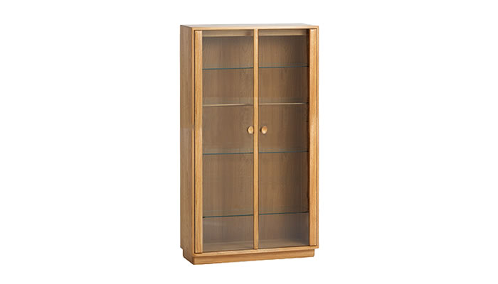 Ercol Windsor Medium Display Cabinet The ercol Windsor medium freestanding glass display cabinet is equipped with four adjustable glass shelves, ample space for displaying your crockery or ornaments.