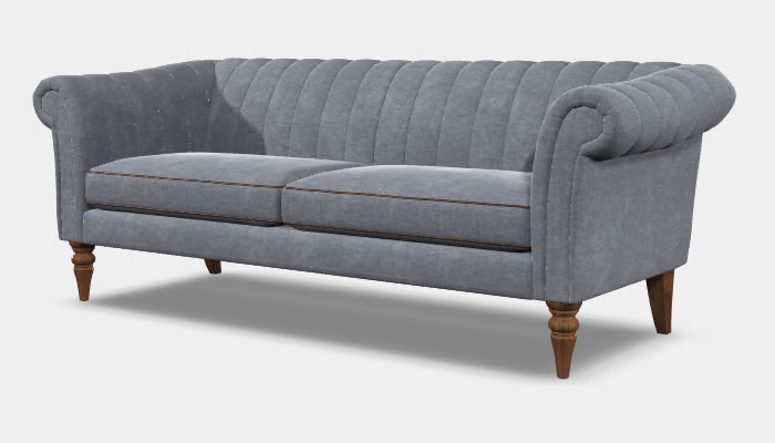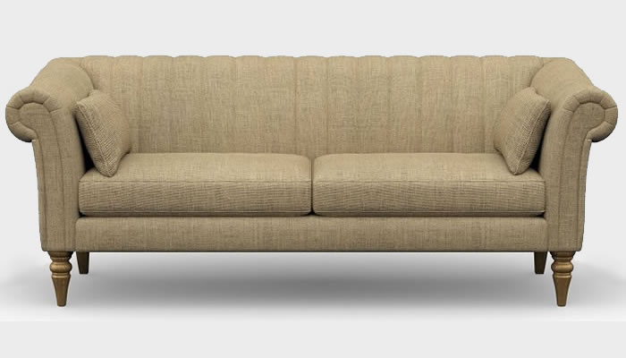 The Wood Bros Rushden four seater large sofa features a low back with striking channels and turned legs. Available in an extensive range of beautiful fabrics, optional soft leather custom piping trim and legs in a selection of wood finishes.