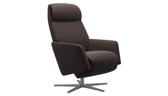 This Stressless® Scott leather recliner with powered sirius base has sleek and elegant design that blends perfectly with any interior. The back and seat are slightly curved providing a soft comfortable place to relax. The adaptable neck support works for multiple users of varying heights. All comfort functions are motorised, synchronised and adjustable. Choose from a large range of luxurious leather options and the sirius cross base is available in brushed aluminium or matt black.