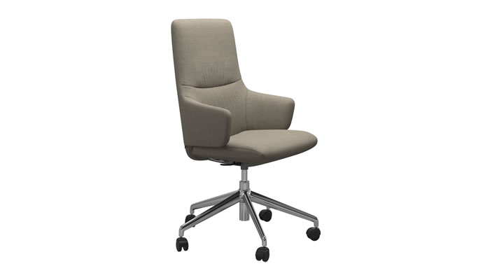 Stressless® Mint High Back Chair with Arms is a home office chair with a light design that will blend in with any style, available in a wide range of luxurious fabrics and polished or black leg options.