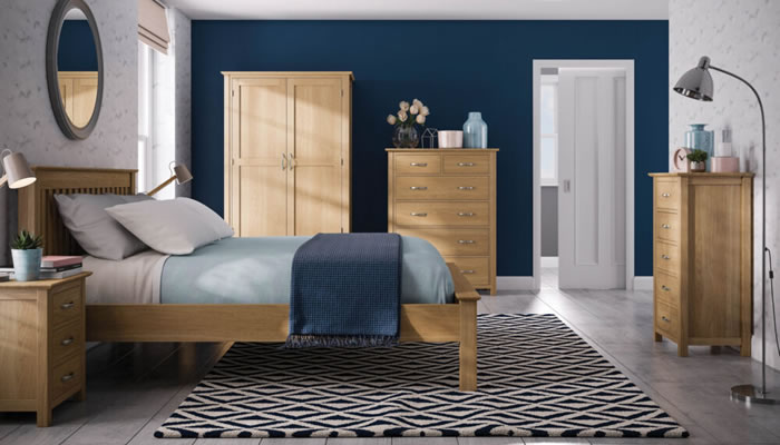 New York Bedroom Single Low Foot End Bed This single 3-foot low foot end bed has a clean and stylish look to add class to any bedroom, with room underneath for storage if required. The contemporary New York Collection is sustainably sourced and uses traditional construction methods such as dovetailed drawers, tongue and groove backs and bases and brushed steel effect metal handles, finished in a protective light natural lacquer.