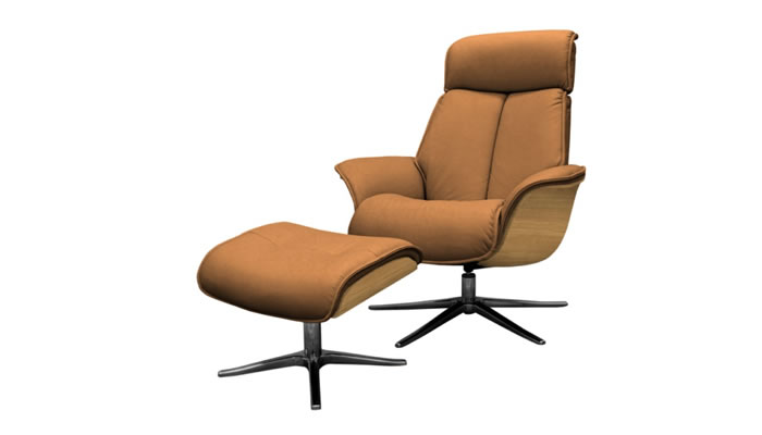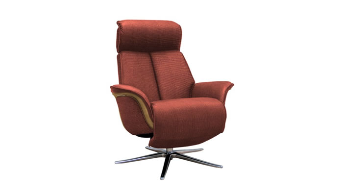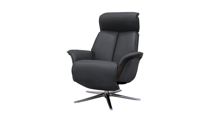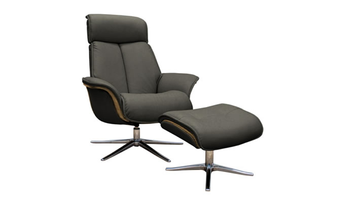 G Plan Lund Leather Chair Dark Veneered Sides & Stool The G Plan Lund Swivel Recliner Chair with veneered trim in dark wood and a free standing footstool comes with chair as standard. Choose from a matt black or brushed chrome star base and a range of beautiful G Plan leathers to suit your style.