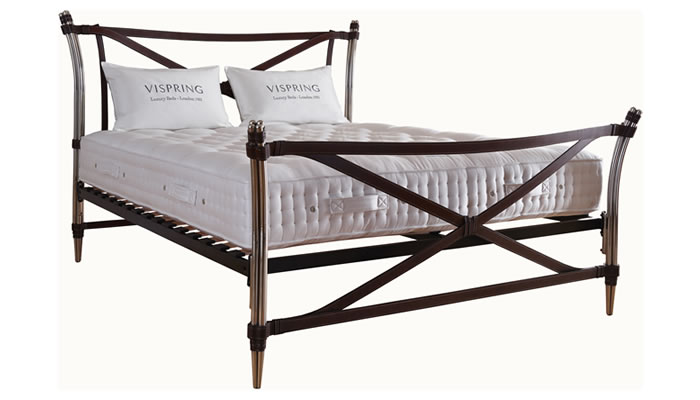 Vispring Bedstead Superb mattresses are two layer hand-nested calico pocket spring construction made exclusively from natural fillings available in soft, medium, firm, and extra firm. Features include: British fleece wool pad, bonded British fleece wool and cotton, horsetail blended with British fleece wool, blended real Shetland wool and cotton, finest quality ticking and hand-tied woollen tufts and twine, finished with three rows of genuine hand side-stitching and horizontal handles and air vents, 30 Year Guarantee.