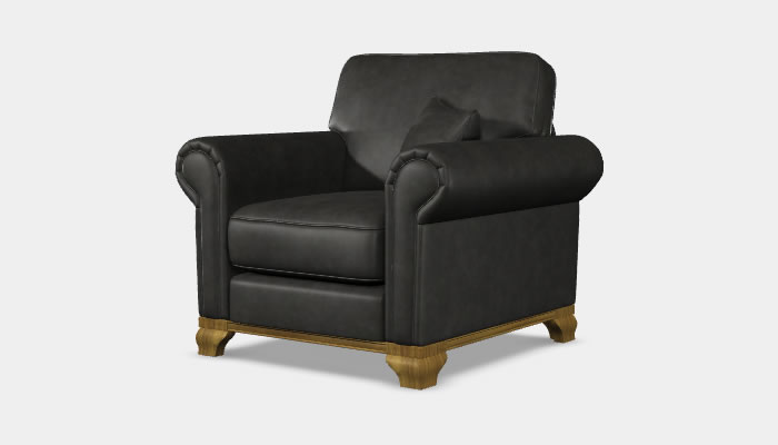 Wood Bros Lavenham Leather Armchair The Wood Bros Lavenham armchair is a traditional style chair which features generous scroll arms and a wooden plinth. Available in a range of quality leathers, optional soft leather custom piping trim and legs in a selection of wood finishes.