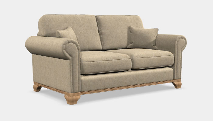 Wood Bros Lavenham Leather Medium Sofa The Wood Bros Lavenham three seater is a traditional style medium sofa which features generous scroll arms and a wooden plinth. Available in a range of quality leathers, optional soft leather custom piping trim and legs in a selection of wood finishes.