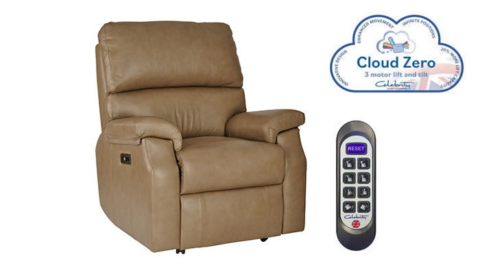 Celebrity Furniture Newstead Cloud Zero Riser Recliner Headrest This Celebrity Furniture Newstead leather Cloud Zero riser recliner with adjustable headrest has contemporary design with superb comfort. Choose from caster or glide feet and any of Celebrity Furniture exclusive Salento leathers.