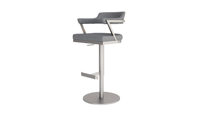 Adjustable gas action Florence Bar Stool with a brushed stainless steel frame and a comfortable PU seat in black, grey, taupe or caramel.