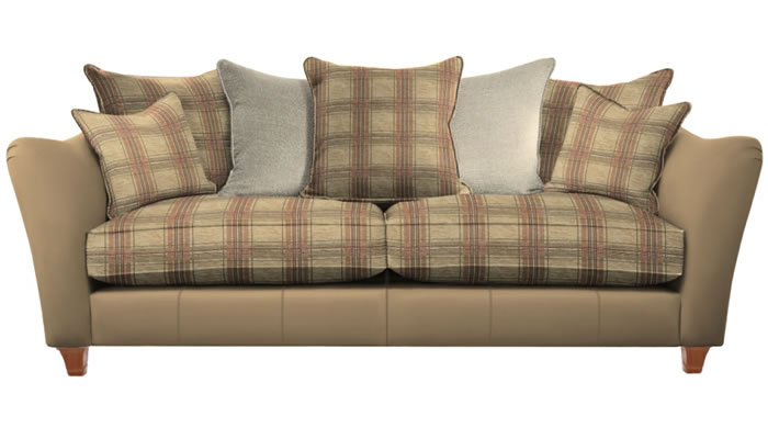 Parker Knoll Harriet Grand Sofa Pillow Back Mix The Parker Knoll Harriet pillow back grand sofa with is a timeless statement piece with a gentle flowing shape, pleated arms and a curvaceous back. Choose from a large selection of stunning soft touch fabrics, fine leathers and leg wood finishes. Outer Leather includes body leather, Inner Fabric includes 5 x pillows plus 2 x seat cushions and Pillow Fabric includes 2 pillows.