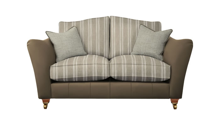 Parker Knoll Harriet 2 Seater Sofa Mix The Parker Knoll Harriet leather fabric mix two seater sofa with two scatters is a timeless statement piece with a gentle flowing shape, pleated arms and a curvaceous back. Choose from a large selection of stunning soft touch fabrics, stunning leathers and leg wood finishes.