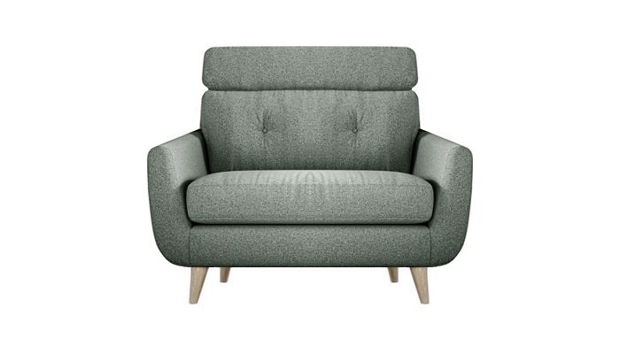 This Signature Collection Salsa Highback Snuggler Chair shows a Danish post war influence in the design with reversible buttoned back cushions and seat cushions which adds extra character. Choose from a selection of modern and exciting fabric options and feet are available in both beech or dark stain.
