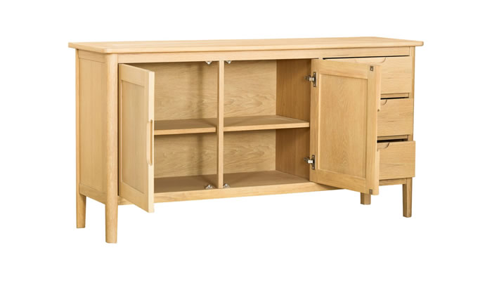 Berwick 2 Door 3 Drawer Sideboard The Signature Collection Berwick 2 Door 3 Drawer Sideboard is elegant and practical with minimal Scandi design. Crafted from a pale oak this sideboard features a spacious large cupboard and 3 Drawers.